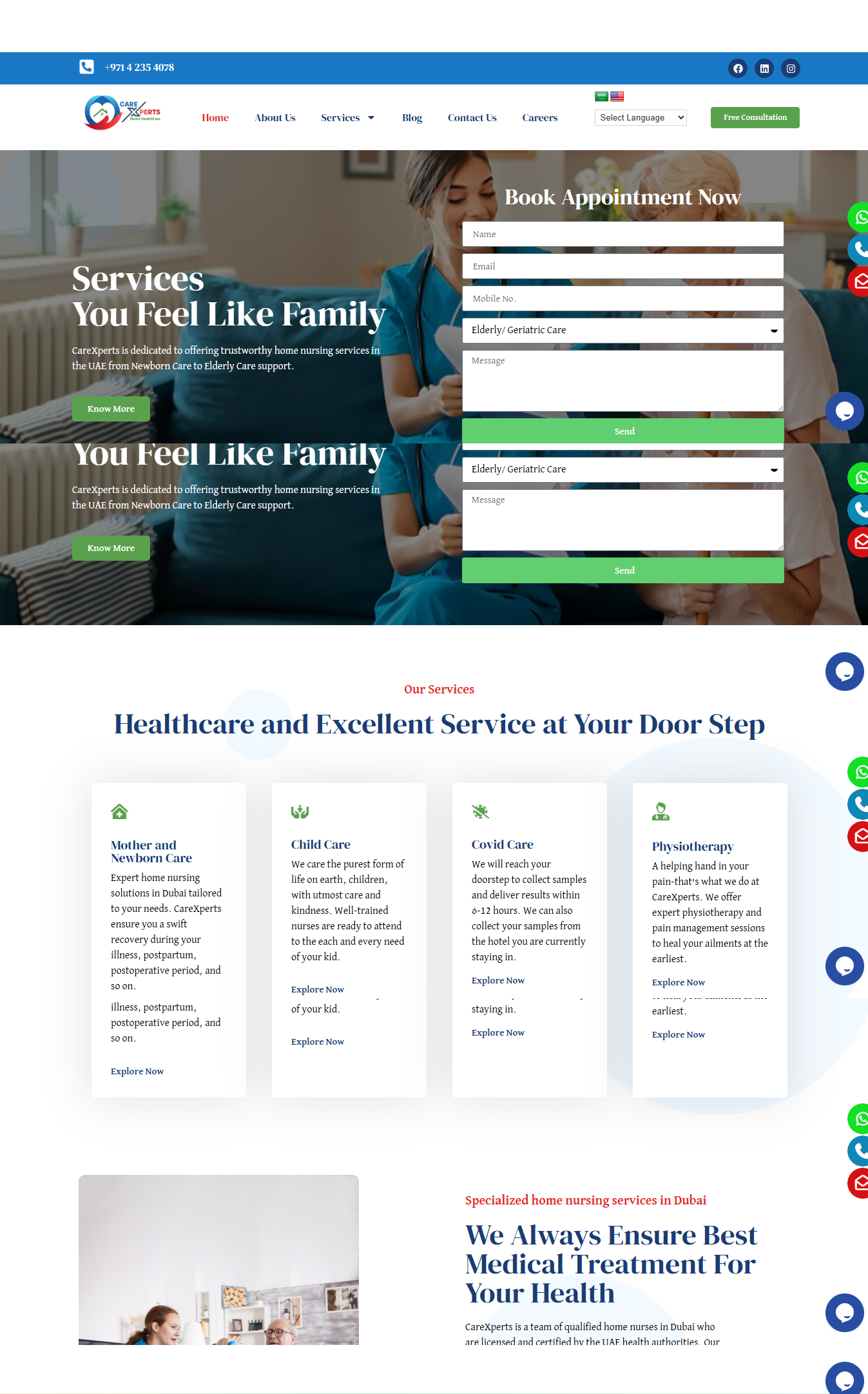 CareXperts Home Healthcare in Dubai is committed to offer premium in-home care in the UAE. We stand as a family to improve the quality of life and comfort of our patients. We strive to serve you better every day by offering best-in-class home nursing solutions in the UAE.