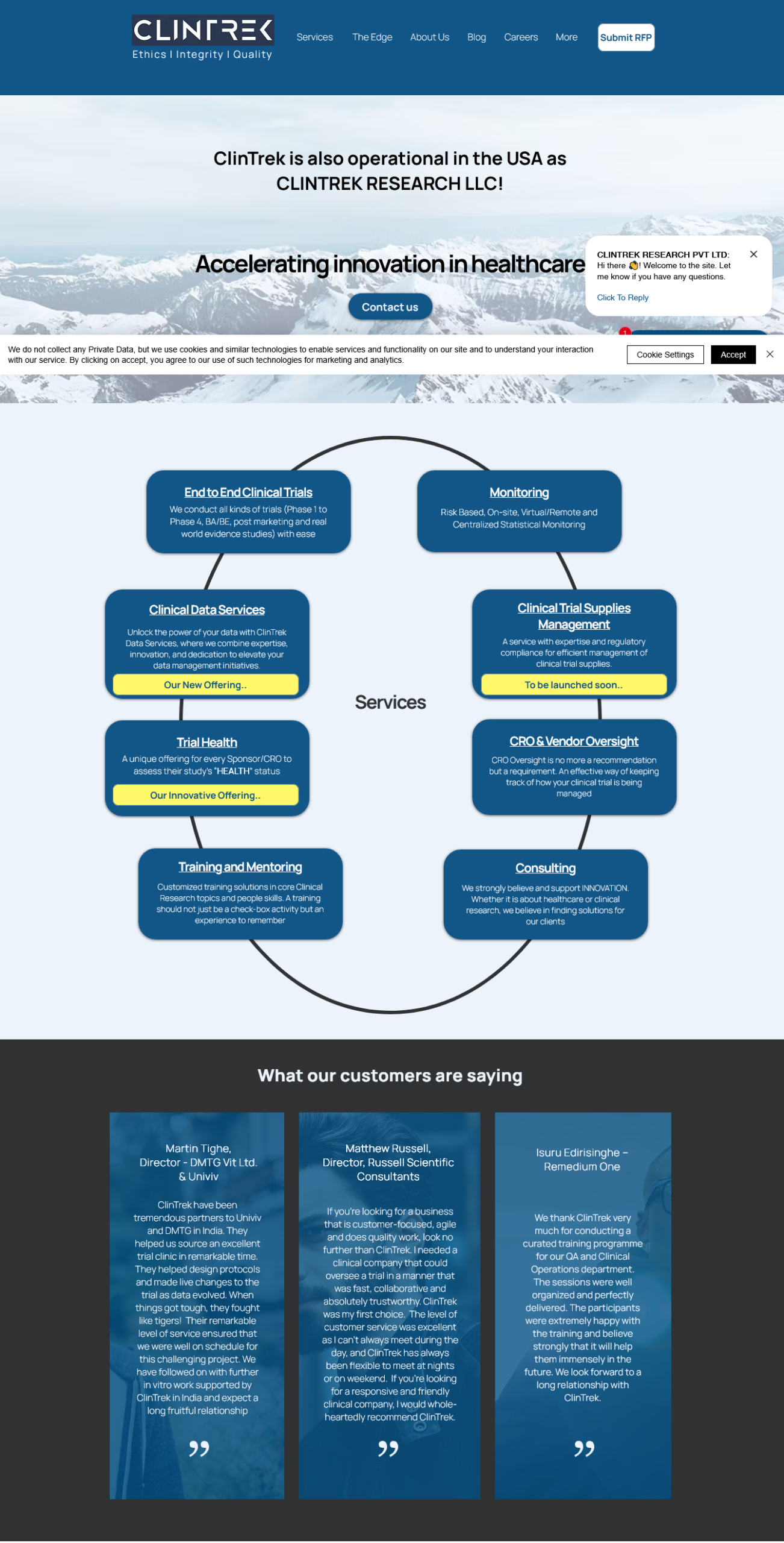 Our agility, flexibility, and solution-oriented approach continue to set us apart in the industry. At ClinTrek, innovation is not just a buzzword; it's a constant driving force that propels us forward 24x7.