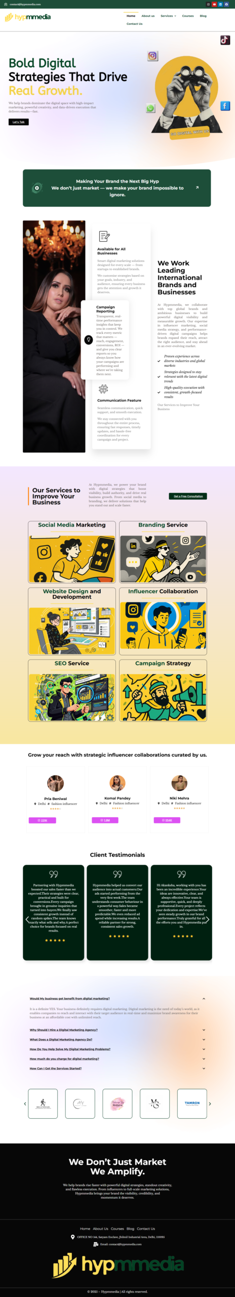 At Hypmmedia, we’re not just a digital marketing agency — we’re your growth partners in the online world. With years of experience across branding, performance marketing, social media strategy, and content creation, we blend creativity with data-driven results to help your business stand out, scale, and convert.
