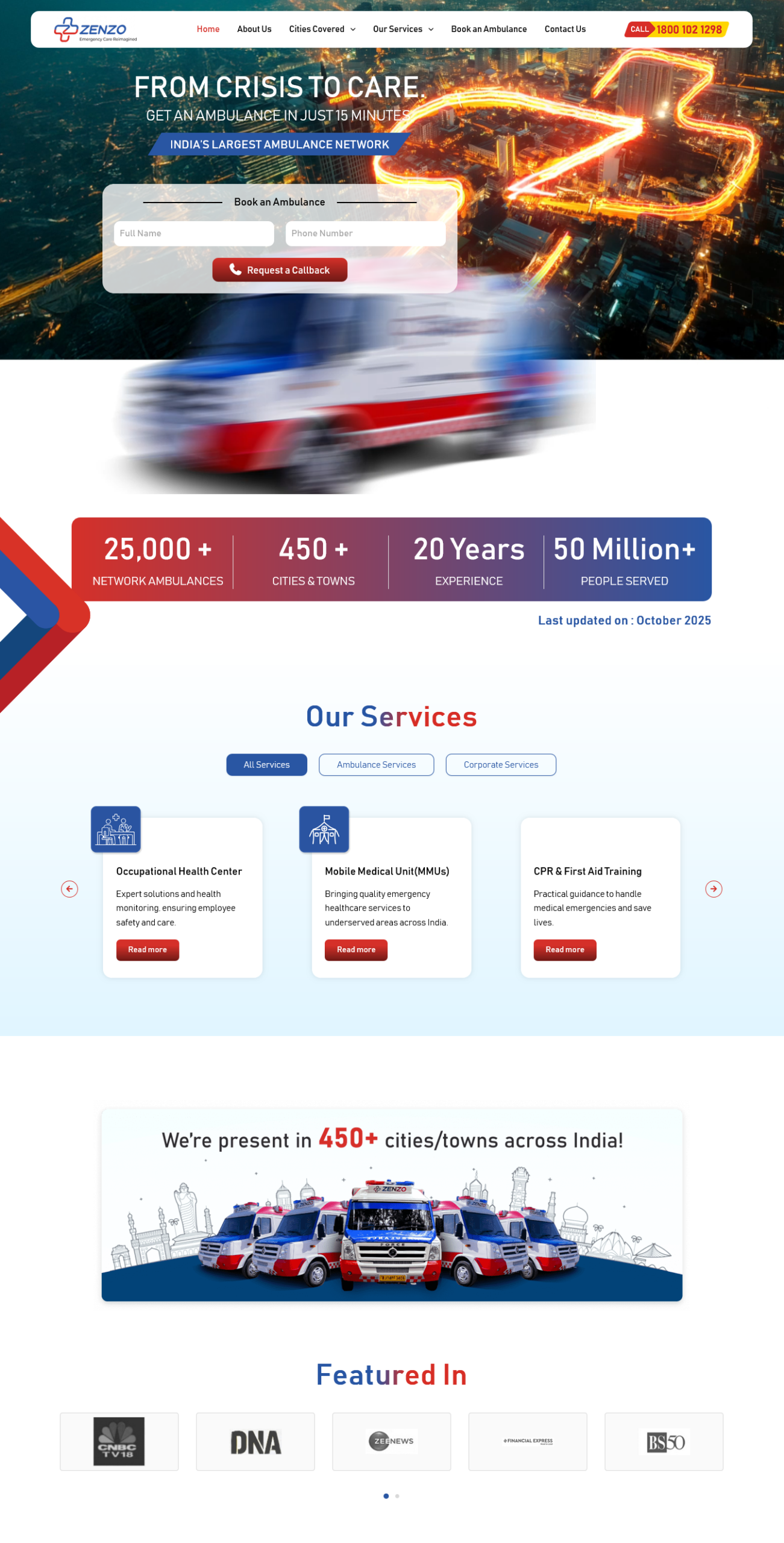 At Zenzo Healthcare, every second counts, and every life matters. As a pioneer in Emergency Medical Services (EMS) and India’s largest private ambulance company, Zenzo strives to go above and beyond in delivering critical care and emergency healthcare solutions, anytime, anywhere.